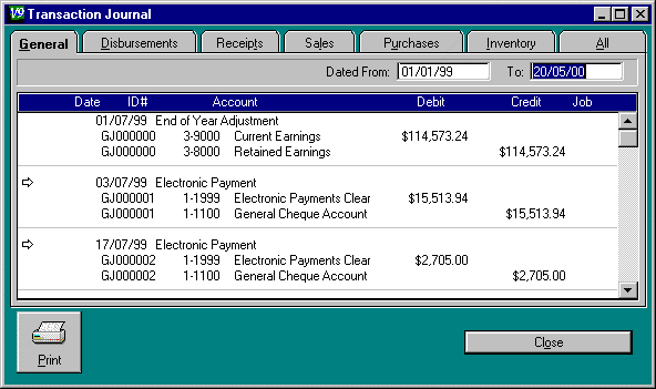 Enter the date for the start of the period you wish to look at General Journal entries for in the Dated From: field. Enter the date for the end of the period in the To: field.
