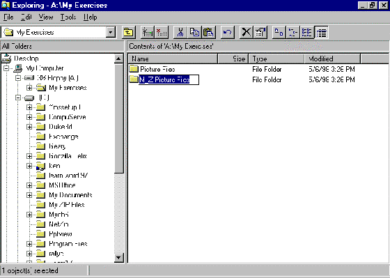 - Select (by clicking) the file or folder you want to rename. We will select the folder M-Z Picture Files.
