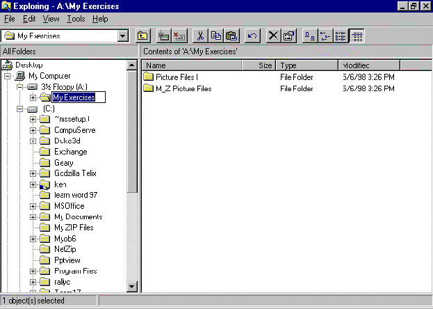 Select the file or folder you want to rename. We will select the folder My Exercises.