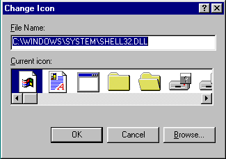 - Click on the Change Icon button. A window showing lots of different pictures will appear.