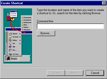 If you know the path to the program you want to appear in the menu, you type the path into the Command Line field. We do not know the path to the Paint program, so we will use the Browse button to help us locate it.