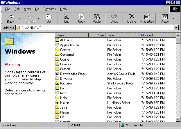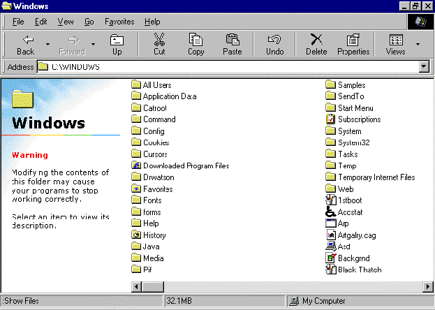 - Click on the button to change the way the window appears (Large Icons, Small Icons, List or Details). Keep clicking the button to cycle through the views.