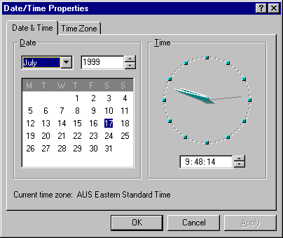 - Double click on the Date/Time icon to display the Date/Time Properties dialog box.