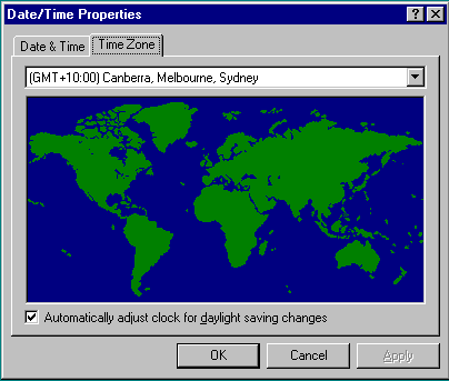 - Click on the Time Zone tab. This is where you set the time zone you are in. The main relevance of this is for daylight saving clock changes.