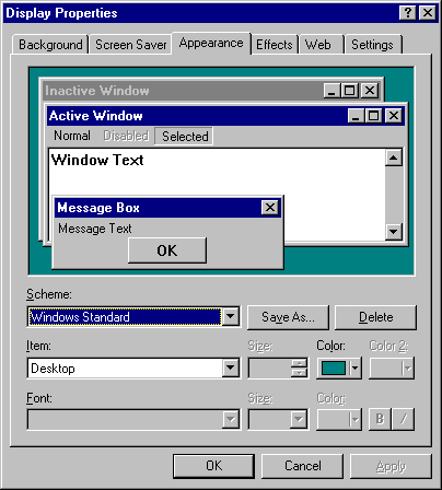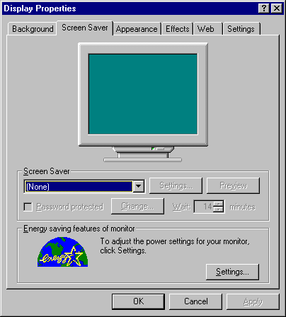 - Click on the black down arrow next to the Screen Saver field. A list of screen savers that come with Windows 98 will appear.