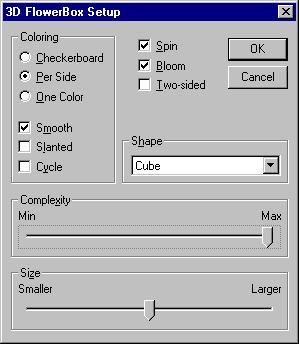 - Click on the Settings button. This allows you to change elements of the screen saver such as colour, number of objects, etc. Make any changes you wish and then click on OK to return to the Display Properties dialogue box.