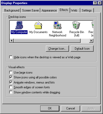 - To change an icon picture, select the icon you want to change in the top box. We will change the icon for My Computer.