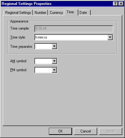 Click on the Date, Currency and Number tabs and review the formats shown here. Make any changes you feel necessary. For example, on the Number tab you might want to separate your numbers by spaces instead of commas.