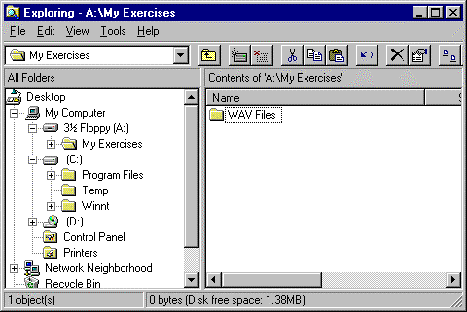 - This will create a new folder next to the folder called WAV Files. Your Windows NT Explorer window should look similar to that below.