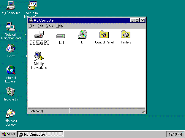 - Double click on the My Computer icon to open it. This will run the program My Computer in a window as shown below.