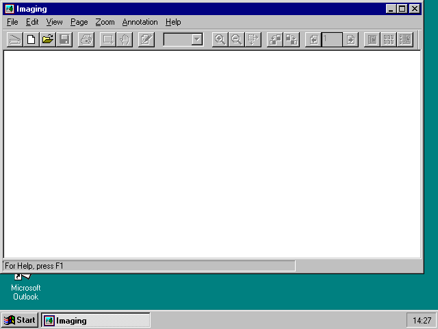 We want to have the Imaging program (a program for manipulating scanned images) running on the Windows 95 desktop.