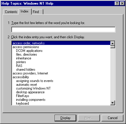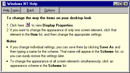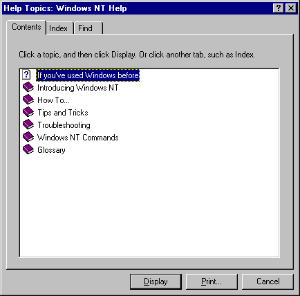 - Select Start/Help to bring up the Help Topics dialog box. You can also access this from any Help menu in a window.