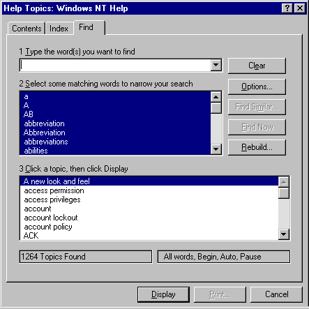 The dialog box has three parts - the Contents tab, the Index and the Find tab.