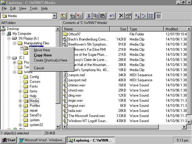 - Right click (click with the right mouse button) on the file to be moved or copied and hold the mouse button down. We will use The Dance of the Sugar Plum Fairy.RMI.