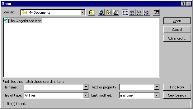 - Select File/Open or click on the Open button to bring up the Open dialog box.